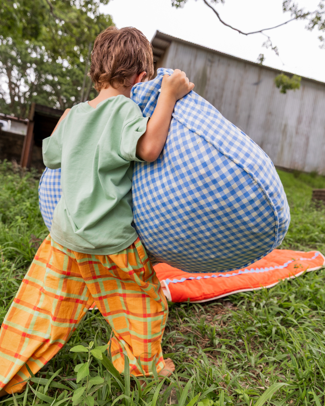 Brushed 100% cotton gingham, piped edging and oversized this is made for play, relaxation and everything in between. Available in 3 Colours.