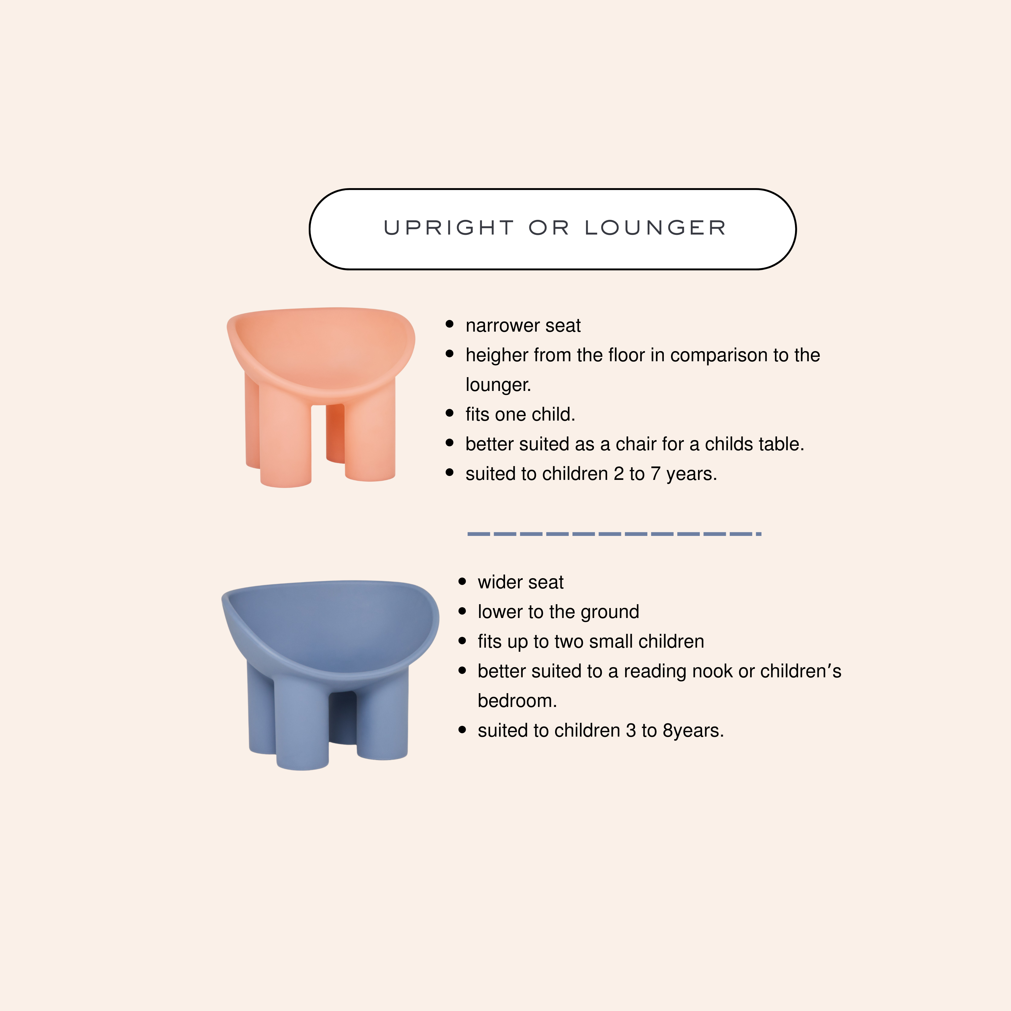 Both options provide sustainable materials , rounded edges and a safe solution to seating for your child.